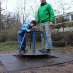 Nach dem Abendessen waren einige schon zum Schlafen müde. Aber wir haben uns noch einmal unsere Regensachen angezogen und haben den Spielplatz am Haus ausprobiert.