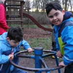 Als wir wieder im Naturfreundehaus angekommen sind, gab es tolle Muffins. Die hat die Mutter von Kaan für uns gebacken, vielen Dank! Zum Abendessen gab es leckere Kürbissuppe. Ahmad und Rahim waren ein gutes Team. Sie hatten die Idee, die Suppe mit der Gabel zu essen. Die Suppe war noch zu heiß. Anschließend halfen sie sich gegenseitig beim Saubermachen.