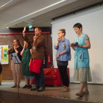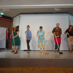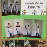 Jeden Morgen traf sich die Schule im Forum. Es wurde das Lied „Wenn ich groß bin, möchte ich…!“ gesungen. Anschließend wurde jeden Tag ein kleines Theaterstück zum Thema Berufe weitererzählt.