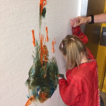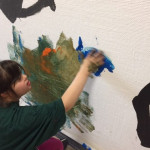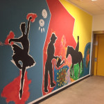 „Wer will fleißige Maler sehen? Der muss zu uns Kindern gehen. Mal, mal, mal – mal, mal, mal, die Wand ist nun nicht mehr kahl!“. Wir haben die große Wand vor dem Fahrstuhl gestaltet. Entstanden ist eine farbenfrohe Fläche mit Beruf-Schattenbildern. Malen kann man mit so vielen Materialen. Darum haben wir viel ausprobiert: Pinsel, Schwämme, Rollen und Hände. Kleine Kunstwerke wurden in der Klasse gemalt. Auf Leinwänden entstanden kleine Schattenbilder. Eine richtige Kunstgalerie konnten wir in der Projektwoche zeigen.