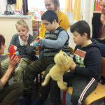 Selbstverständlich wurden zu diesem Zweck keine echten, sondern lebensgroße Plüschtiere eingesetzt, die von den Schülerinnen und Schülern ausgiebig angeschaut und gekuschelt werden durften. Viele der Schülerinnen und Schüler verfügten vor allem zum Thema Hund über ein solides Vorwissen; zum Teil durch eigene Hunde, aber auch durch den Umgang mit den Therapie- und Schulhunden „Ducky“ und „Yasi“ in der Hunde-AG.