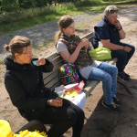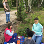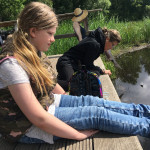 Nach dem Morgenkreis sind wir mit dem Schulbus losgefahren. Manche Wegstücke führten über Pflastersteine. Da hat sich Lian lauthals gefreut, wenn der Bus so richtig gerappelt hat. Am Würmsee  gibt es viel zu sehen und auszuprobieren. Im Wald am Ufer gibt es ein Haus aus Eisenstangen. Während Sayina, Samea und Frau Twer die eisernen Möbel ausprobiert haben, haben sich Gabi und Lena hinter einer großen Wurzel versteckt und versucht, die anderen zu erschrecken. Auf einem Steg am gegenüberliegenden Ufer gibt es zwei breite Bänke, wo zwei oder drei Personen neben einander sitzen können. In der Sonne konnten wir uns erstmal wieder aufwärmen. Wer es gewagt hat, von Nahem ins Wasser zu schauen, konnte wunderschöne grüne Frösche und Libellen entdecken.