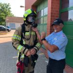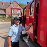 In diesem Schuljahr haben wir uns in unserem Projekt „Feuerwehr“ viel mit der Ausrüstung von Feuerwehrleuten, Feuerwehrfahrzeugen und Aufgaben der Feuerwehr beschäftigt. Am 24. Juni 2022 waren wir dann bei der Feuerwehr Mellendorf neben unserer Schule eingeladen. Herr Niedzella begrüßte uns und sagte gleich am Anfang „Bei der Feuerwehr sagen alle Du!“. Also durften wir „Dirk“ zu ihm und „Amir“ zu seinem Kollegen sagen. Dirk und Amir haben uns viel erzählt und gezeigt: der alte und der neue Feuerwehrhelm, die Ausrüstung (sie wiegt 30 kg!), wie man Feuer löschen kann, dass die Feuerwehr Mellendorf keinen Rettungswagen hat, aber insgesamt acht Feuerwehrfahrzeuge, wo Dirk seine Ausrüstung hängen hat, wie man eine Feuerwehrspritze bedient… Wir durften sogar die Sirene mit dem Blaulicht hören (also Ohren zuhalten!). Adlan war so überrascht und sagte „LAUT !!!“. Und ganz toll, wir durften uns in einen alten Feuerwehrwagen setzen und eine kleine Runde drehen… Währenddessen hatte Aaron eine „Privatführung“ mit Amir. Sogar das Funksprechgerät haben die beiden zusammen ausprobiert! Dirk hat uns einen Super-Tip gegeben, wie wir uns den Notruf merken können: 1 Mund, 1 Nase, 2 Augen (1 1 2). Unter den vielen Fragen, die wir gesammelt hatten, war auch „Sind alle Feuerwehrleute nett?“. Die Antwort haben wir selbst erlebt: JA! Vielen Dank an Dirk und Amir für die tolle Führung!