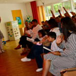 Am 29. August 2022 war ein großer Tag für Lissana, Ronya und Jeremey: ihr erster Schultag! Die Einschulungsfeier fand im Forum statt. Lissana, Ronya und Jeremey haben viele Gäste aus ihren Familien mitgebracht. Und viele Schüler:innen und Mitarbeiter:innen der Schule unter den Eichen feierten mit. Vor der Verteilung der Schultüten wurde es spannend! Plötzlich tauchte noch ein Gast auf: Alma, das Lama! Sie hatte von der Einschulung der „Lamaklasse“ gehört und wollte unbedingt die neuen Kinder kennenlernen. Lissana, Ronya und Jeremey waren am ersten Schultag zwar aufgeregt, aber dennoch sehr sehr mutig! Sie trauten sich alleine zu Frau Rohde nach vorne und nahmen ihre Schultüten in Empfang. Anschließend gingen sie mit Alma und ihrem Klassenteam (Herr Stiller, Frau Treder und Frau Gadesmann) in ihren neuen Klassenraum und sagten zu ihren Eltern „Tschüss, bis gleich!“. Diese Woche werden sie Besuch von Bella, Mia und Leon aus der Abschlussstufe bekommen. Die drei wollen gerne das Patenamt für Lissana, Ronya und Jeremey übernehmen.