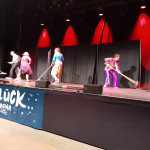 Zwischen den Aufführungen kamen die lustigen Clowns vom Eingang auf die Bühne und brachten uns mit Quatschfahrradfahren, Putzen und schiefem „Singen“ zum Lachen.