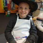 Die Lehrlinge Ahmad, Felix, Jasper, Lennox, Phil und Shalia haben sich zunächst für die Hexenküche angemessen kleiden müssen. Dafür haben sie ihre eigenen Küchenschürzen gestaltet und den passenden Hexenhut aufgesetzt.