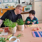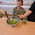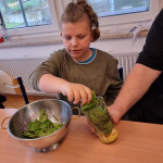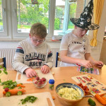 In der Hexen-Woche wurde zuerst Kräuterkunde gelehrt: Für die leckere Kräuterbutter mit Baguette wurden Schnittlauch, Petersilie und Basilikum klein geschnitten, in die Butter gerührt und diese dann mit allerlei geheimen Zutaten gewürzt.
