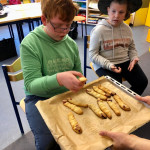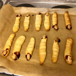 Dann waren alle bereit, etwas besonders Herausforderndes zuzubereiten: Es wurden Hexenfinger gebacken, die wirklich gruselig aussahen, dann aber überraschenderweise total süß nach Keksen schmeckten.