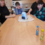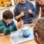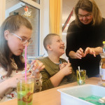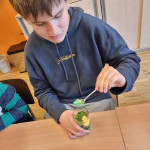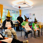 Wer in der Hexenküche arbeitet, muss sich mit sehr ausgefallenen Zutaten auskennen und sich erst einmal Mutproben unterziehen. Das hieß, dass spezielle Zutaten für besondere Hexentränke probiert wurden wie z.B. Drachenblut, getrocknete Fledermausohren, Zähne, Augäpfel oder Hexen-Gehirn. Die Mutprobe haben alle bestanden! Einigkeit herrschte darüber, dass das Drachenblut besonders schmackhaft war (und irgendwie nach Schokopudding schmeckte…).