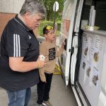 Schon fast traditionell kam als „Überraschungsgast“ der Eiswagen des Eiscafés Dal Cin zu Besuch. Leckererweise hatte er uns 13 verschiedene Eissorten mitgebracht, die von Schülern und Erwachsenen genüsslich verspeist wurden.