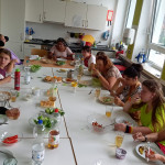 Die Klassen Twer und Ruddat blieben nach Schulschluss in der Schule und bereiteten sich auf einen Tanzabend in der CD Kaserne in Celle vor. Die Frauen nutzten die Zeit um sich bei lauter Musik auf den bevorstehenden Abend einzustimmen und vielleicht noch das Outfit zu wechseln. Um 16.45 Uhr wurden dann alle in die Küche gerufen. Es gab Wraps mit Hühnchen, Falafel, Schafskäse und Salat. Das war lecker!