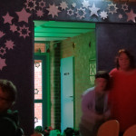 Nach dem Schwarzlichttheater gab es noch ein Theaterstück mit sieben Zwergen und einem Pferd. Die Zwerge hatten ein Päckchen, das haben sie immer weitergegeben. Frau Holle hat auch mitgespielt!