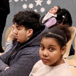 Es gab auch einen Chor, der Weihnachtslieder gesungen hat. Da ist uns aufgefallen, dass sie immer leise gesungen haben und dann plötzlich ganz laut. Manchmal hat man sich richtig erschrocken. Sie mussten immer auf die Handbewegungen vom Dirigenten und auf seinen roten Lichtstab achten. Manche Lieder kannten wir, aber einige waren auch ganz neu für uns. Der Schulleiter hat erklärt, dass sie extra für die Grundschule geschrieben wurden.