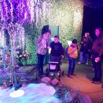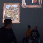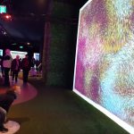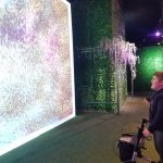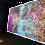 Einige seiner Gemälde waren auf großen Leinwänden projiziert und auf einer Leinwand waren alle eingeladen, die Farben selbst zu bewegen und Freude am Spiel mit den Farben zu haben. Das war für uns großartig – durch Schwingen der Arme, hüpfen, bücken und strecken haben wir ordentlich Schwung in die Farbwelt gebracht.