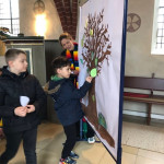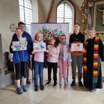Am 9. April haben wir zusammen mit Pastorin Noormann und dem Organisten Herrn Pietsch zweimal Frühlingsgottesdienst gefeiert. Dieses Mal sind auch viele Kinder und Erwachsenen aus dem Domino-Kindergarten gekommen. Das Thema von unserem Gottesdienst war in diesem Jahr „Grün – es grünt!“. Der „graue Winter“ ist vorbei! Draußen in der Natur wird alles wieder grün und erwächst zu neuem Leben! Das ist jedes Jahr wieder von Neuem wie ein „Wunder“! Alle Klassen und Kindergartengruppen haben viele Blätter und Gräser angemalt und mitgebracht. Gemeinsam haben wir den kahlen, winterlichen Baum begrünt… und zu einem richtigen Frühlingsbaum gemacht! Am Ende vom Gottesdienst haben alle Klassen und Gruppen ein „Päckchen“ mitbekommen. Darin war Erde, Kressesamen und eine Schale. Nun kann das „Grün“ des Frühlings auch in die Schule und in den Kindergarten kommen…