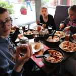 Eigentlich wollten wir dann im Anna-Leine-Cafe etwas trinken, aber da haben wir keinen Platz bekommen.  Wir haben uns aber eine Weile die Surfer in der Leine angesehen und sind anschließend einmal quer durch die Innenstadt zum Pizzahut gegangen. Das war echt lecker und für Bella gab es sogar eine Pizza ohne Tomatensoße.