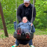 Als wir da waren haben wir uns noch eine ganze Weile draußen aufhalten müssen, weil unsere Zimmer noch nicht fertig waren. Leon hat dann einen Hasen im Rehkostüm im Wald entdeckt und Alicia steckte das erste Mal in der Reifenschaukel fest.