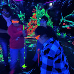 Am Nachmittag fing es an zu regnen und wir sind zum Neongolf in die Innenstadt gefahren. Das hat Spaß gemacht. Herr Ruddat hat gewonnen, am Anfang lag aber Kira vorne.