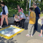 Zum Start unserer Projektwoche 2024 wacht die Sonne über unsere zehn Stationen, die wir heute am Montag auf unserem Schulhof begonnen haben.