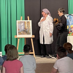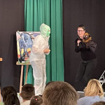 Anna Ancher geht mit ihrer Staffelei durch das Publikum. Sie wollte draußen ein Bild malen, aber es ist dunkel und regnet. Sie geht mit ihrer Staffelei in den geheimnisvollen Raum. Dort beginnt sie zu malen. Tutula ist begeistert! Sie hilft ihr bei der Kunstmalerei. Sie nennen ihr Werk „Die blaue Stube“.