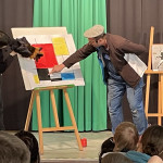 Der Mittwoch hat begonnen. Hausmeister Herbert geht seiner Tätigkeit nach und fegt und fegt und fegt… Plötzlich hört er laute schnelle Schritte – aber nichts passiert. So nimmt er wieder seinen goldenen Schlüssel und betritt den geheimnisvollen Raum. Zum Betrachten der wunderschönen Kunstwerke möchte er sich auf einen Stuhl setzen, der aber von Tutula besetzt ist. Nach morgendlichem Recken und Strecken entdecken die beiden ein neues Kunstwerk, das aber noch unvollendet ist. Mit Hilfe der jungen Künstlerin Manja wird der „originale Mondrian“ mit einem roten Quadrat zum Abschluss gebracht. Und schon wieder klingelt das Telefon von Hausmeister Herbert und …