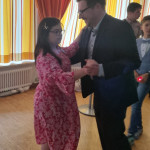 Zum ersten Mal in der Schulgeschichte der Schule unter den Eichen fand ein Abschlussball auf Wunsch der Schülerinnen und Schüler statt. Unsere festlich gekleideten Absolvent:innen und ihre Familien trafen gegen 19.00 Uhr in der Schule unter den Eichen ein. Der „DJ Micha“ hatte sein gesamtes Equipment aufgebaut, inklusive einer Fotobox. Schon ging die Party los …