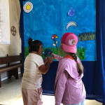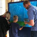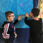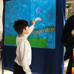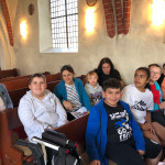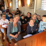 In diesem Schuljahr haben wir einmal gleich zu Beginn einen Gottesdienst gefeiert. Und zwar haben wir am 27. August im Rahmen des Schulgottesdienstes unsere Kunstausstellung in der St. Georgsgemeinde eröffnet. Die Kunstwerke sind in unserer Projektwoche „artweek“ im Mai entstanden. „Bunt“ war unsere Projektwoche, „Bunt“ ist auch Gottes Welt – das war das Thema unseres Gottesdienstes. Viele Überraschungen gab es in dem Gottesdienst: der Organist Herr Pietsch spielte zu Beginn die Melodie des Liedes „Grün, grün, grün sind alle meine Kleider…“, Pastorin Noormann spielte mit allen zu Anfang das Spiel „Ich sehe was, was du nicht siehst, und das ist …!“ und dann kam noch das „Tuschelied“ – das Lied unserer Projektwoche – aus den großen Lautsprechern in der Kirche! Die Farben in Gottes Schöpfung haben die Menschen schon immer fasziniert. Davon berichtet auch der Psalm 104 in der Bibel. Pastorin Noormann erzählte von dem Psalm, und gleichzeitig entstand ein neues „Kunstwerk“ in der Kirche: blau wie der Himmel, blau wie das Wasser, bläulich wie die Wolke, grün wie das Gras, bunt wie die Blumen, gelb wie die Sonne, weiß wie der Mond…