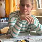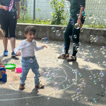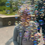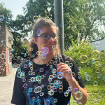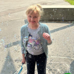 Die Seifenblasen-Gruppe, das waren Elaine, Hazar, Nikita, Nadja, Arian und Suleiman. Alle sechs Schüler:innen haben in der Projektwoche den Wind unseres Ventilators gespürt und genossen und die Bewegung von Luft erfahren. An jedem Tag haben wir gemeinsam kleine, große und gigantische Seifenblasen hergestellt- ganz klassisch gepustet und geschwenkt oder auch mit elektronischen Geräten per Knopfdruck. Dazu haben wir unser eigenes Seifenblasenlied gehört, welches Nikita bereits am ersten Tag musikalisch interpretieren konnte. Besonders Nadja und Suleiman hatten sichtbar Freude an jeder einzelnen Seifenblase! Wir alle haben gemeinsam Windspiele aus Laminierfolie hergestellt, die später tatsächlich ein bisschen an schwebende und schillernde Seifenblasen erinnert haben. Elaine und Hazar haben hingebungsvoll gemalt und Arian hat sich für viel Glitzer entschieden. Am Freitag konnten alle Kinder ihre tollen Arbeiten präsentieren und später auch mit nach Hause nehmen.