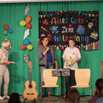 Am 18. August 2025 war Einschulung in der Schule unter den Eichen. Wir konnten neun neue SchĂŒler:innen willkommen heiĂen. Ab jetzt gibt es eine neue Igel-Klasse mit sieben Schulstarter:innen und zwei verstĂ€rken die Dino-Klasse. Es gab ein fröhliches Fest im Forum und anschlieĂend erlebten alle Kinder in ihren neuen Klassen die erste Unterrichtsstunde. Ein aufregender Tag fĂŒr die Familien und die Schule und vor allem fĂŒr die Kinder!!!