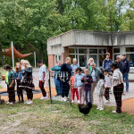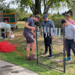 Caruso, der Hahn mit seinen neun Hühnerdamen vom Biohof Rotermund-Hemme aus Brelingen werden die kommenden vier Wochen auf unserem Schulhof zu Besuch sein. Die Klasse Ahrendt hat fleißig mitgeholfen, alle Materialien zu tragen und den Zaun aufzubauen. Rechtzeitig zur 2. Pause war das Gehege fertig und die Hühner konnten ihren Stall verlassen. Die Schülerinnen und Schüler haben die Hühner begeistert begrüßt – ganz mutige waren schon im Gehege und haben die Hühner gestreichelt oder gefüttert. Wir freuen uns auf viele neue Erfahrungen in den nächsten Wochen!