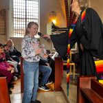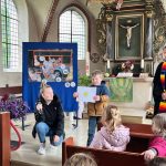 Am 7. Oktober haben wir zusammen mit Pastorin Noormann in der St. Georgskirche in Mellendorf Erntedank gefeiert. Wieder gab es zwei Gottesdienste. Im zweiten Gottesdienst waren viele Kinder aus dem Domino-Kindergarten dabei: Eulengruppe, Marienkäfergruppe und Froschgruppe.
