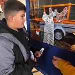 Wir haben dafür gedankt, was die Natur uns Menschen zum Leben gibt: Blumen, an denen wir uns erfreuen dürfen, Obst und Gemüse (Möhren, Äpfel, Kartoffeln …), aus denen wir viele leckere Gerichte zubereiten können. Vor allem haben wir auch gedankt für die Zeit, die wir in den letzten vier Wochen mit den Hühnern aus dem Hühnermobil des Biohofs Rotermund-Hemme hatten. Verschiedene Klassen haben für die Hühner gesorgt mit Futter und Wasser. Und die Hühner haben uns versorgt mit Eiern, Die wurden jeden Tag gesammelt. Im Gottesdienst haben wir alle zusammen ein großes Bild vom Hühnermobil gestaltet mit allen Hühner (Henriette, Rosa, Trude …) und dem Hahn Caruso. Auch das Futter kam zu dem Bild und natürlich die Eier…