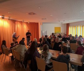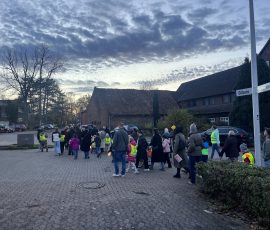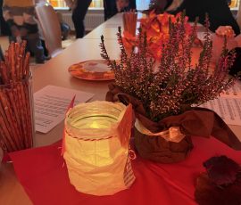 Am 12.11.2025 haben wir unser Laternenfest gefeiert. Die Dinos, Drachen, Igel und Lamas blieben nach dem Unterricht noch in der Schule, um dann um 15:30 die Eltern in Empfang zu nehmen. In gemütlicher Atmosphäre wurden köstliche selbst gebackene Snacks verspeist und geplaudert. Es war ein sehr schönes Beisammensein im Forum.