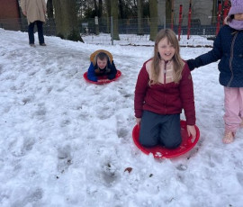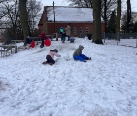 Der Winter hat so richtig Einzug gehalten. Auch an der Schule wird der Winter auf schöne Weise genutzt. Der schneebedeckte Rodelberg auf dem Schulhof lud die Kinder zum Schlittenfahren ein und in den Pausen wurde eifrig gerodelt. Das hat Spaß gemacht!