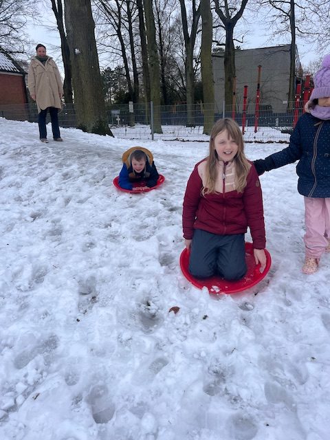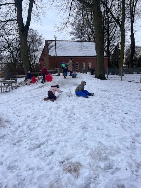 Der Winter hat so richtig Einzug gehalten. Auch an der Schule wird der Winter auf schöne Weise genutzt. Der schneebedeckte Rodelberg auf dem Schulhof lud die Kinder zum Schlittenfahren ein und in den Pausen wurde eifrig gerodelt. Das hat Spaß gemacht!