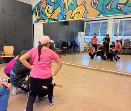 Zugegebenermaßen waren wir als Lehrkräfte schon ein wenig skeptisch: eine professionelle Tanzlehrerin sollte unseren sechs Schüler:innen in unserer Projektgruppe „Hip Hop“ beibringen. Jana, die Tanzlehrerin schaffte es im Handumdrehen den Schüler:innen verschiedene Figuren beizubringen, viel Freude zu vermitteln und wirklich jedem einzelnen seinen persönlichen Erfolg zu bescheren. Die drei Übungstage vergingen wie im Flug und machten allen riesigen Spaß und bei der Präsentation der Projektgruppenergebnisse glänzte die „Hip Hop-Gruppe“ mit einer tollen Bühnenshow.