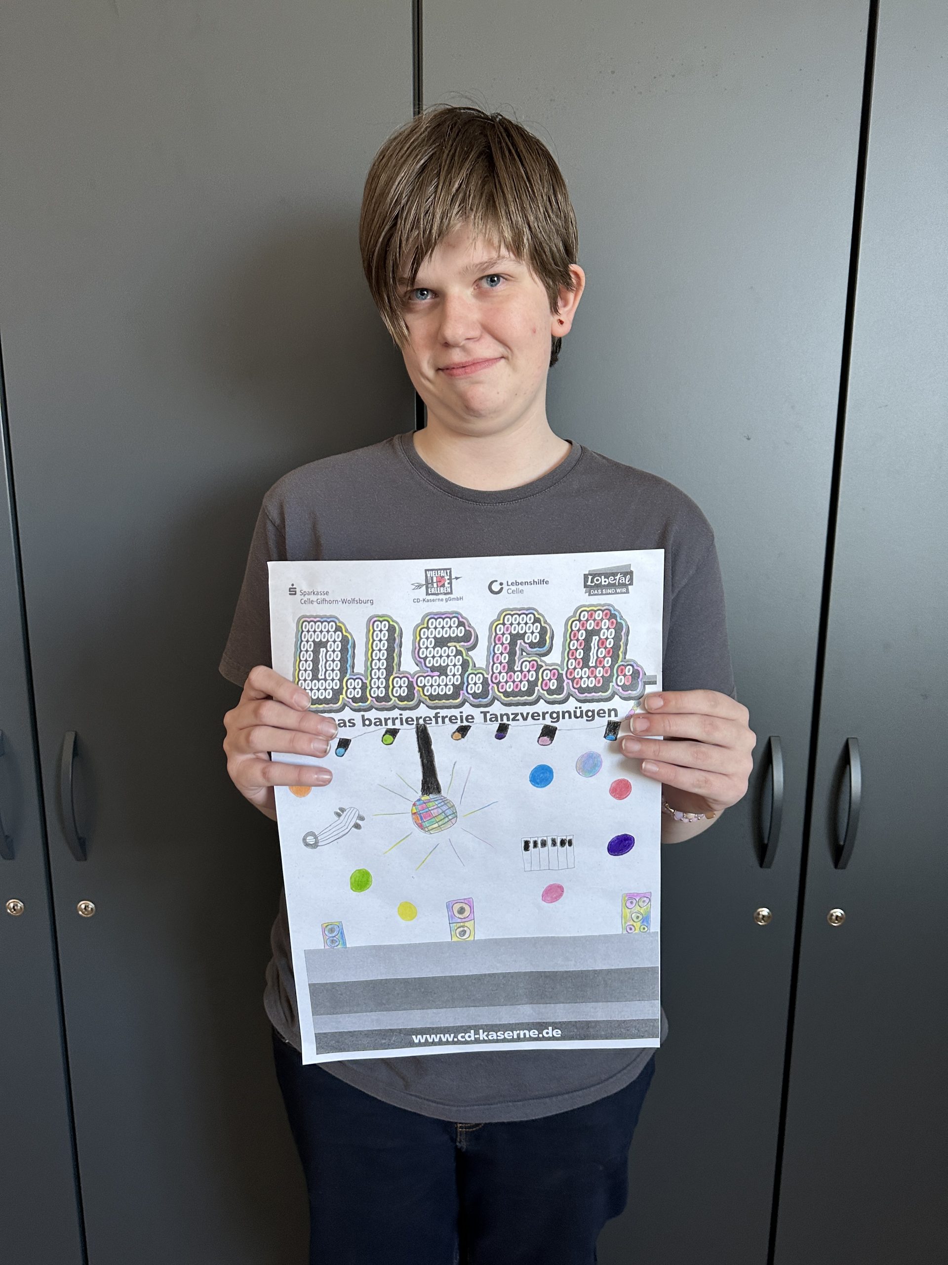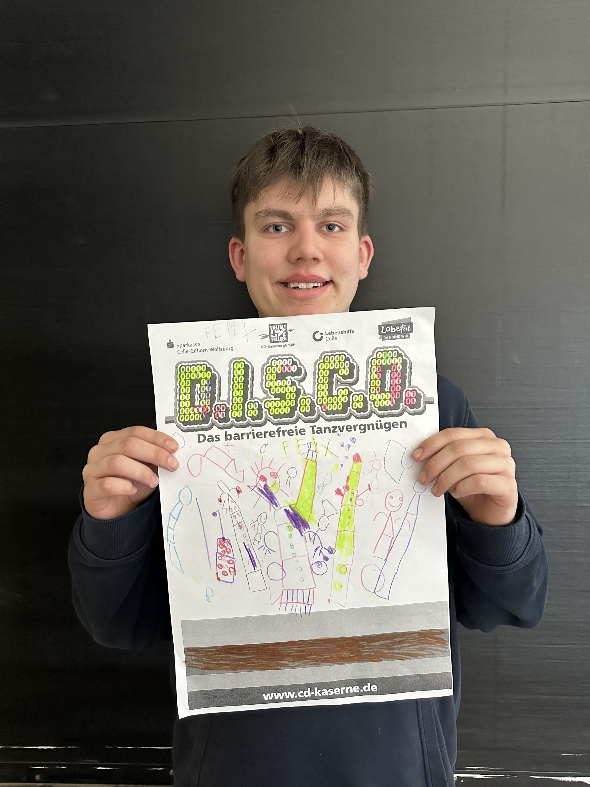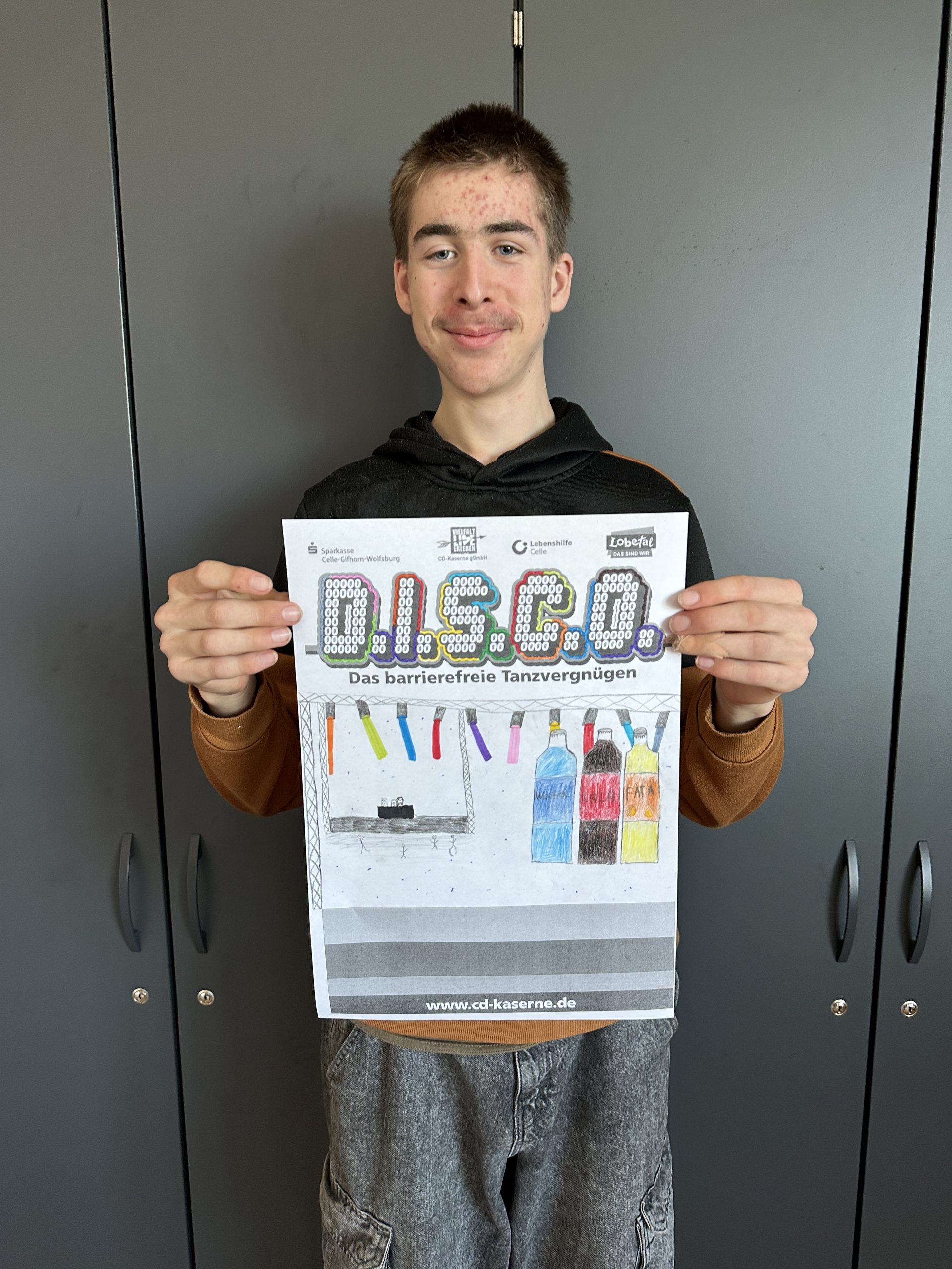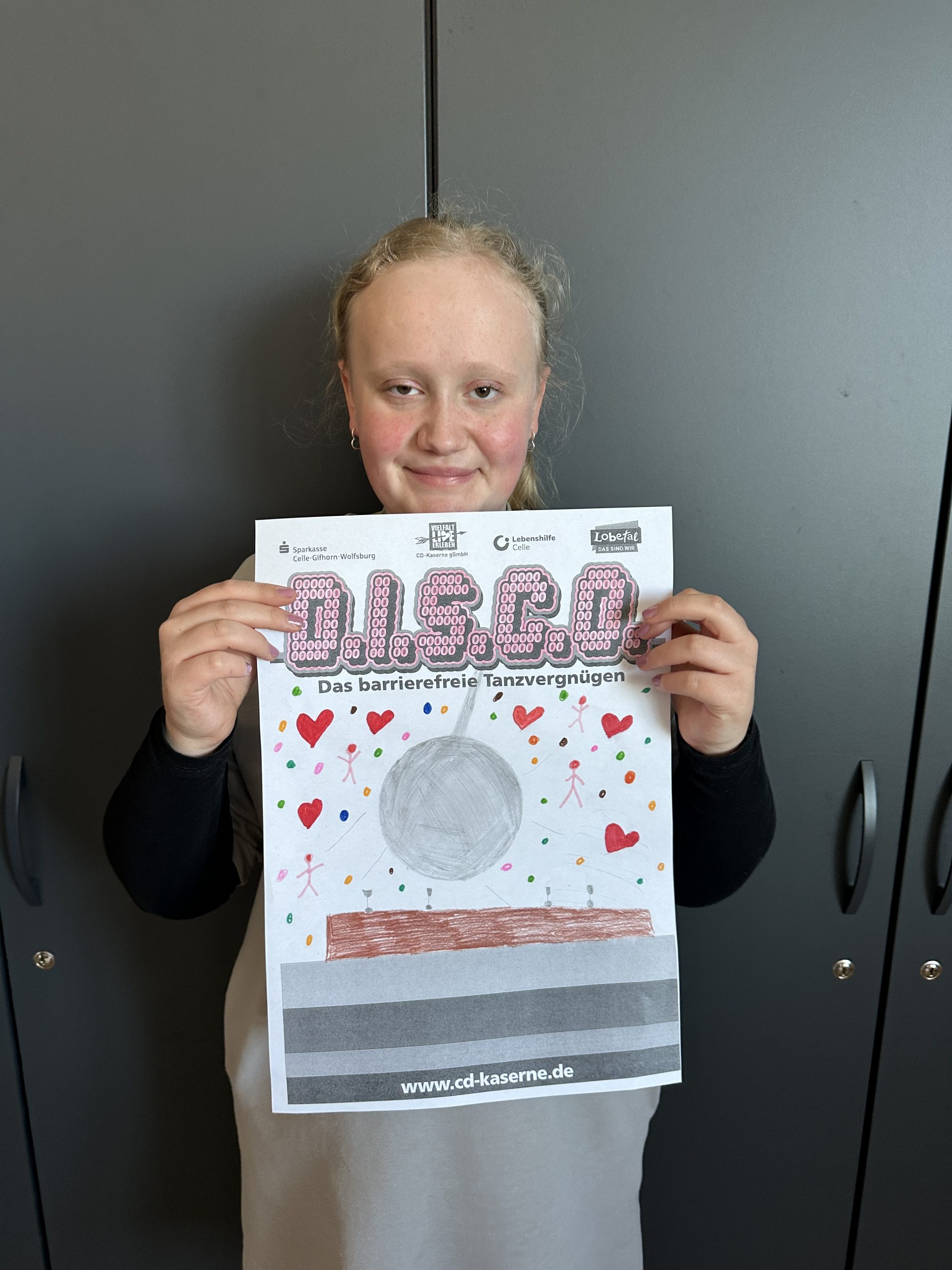 Einige Schüler:innen der Abschlussstufe waren mal wieder zusammen in Celle in der D.I.S.C.O.! Dieses Mal haben wir vorher in der Schule Hot Dogs gegessen. Außerdem wurde gespielt und wir haben uns umgezogen. Dann sind wir mit dem Schulbus in die CD Kaserne gefahren. Am Eintritt haben wir einen Stempel bekommen. Gleich vorne hingen viele selbstgemalte Plakate, auch von unserer Klasse! Wir haben nämlich am Plakatwettbewerb teilgenommen. Zum Abstimmen, welches Plakat das schönste ist, konnten wir bunte Klebepunkte verteilen. Hoffentlich gewinnt eins unserer Bilder! Das wird dann nämlich das Werbeplakat für die nächste Disco.