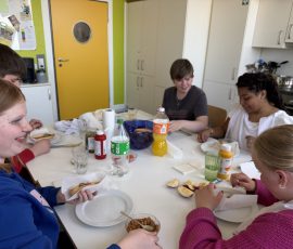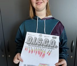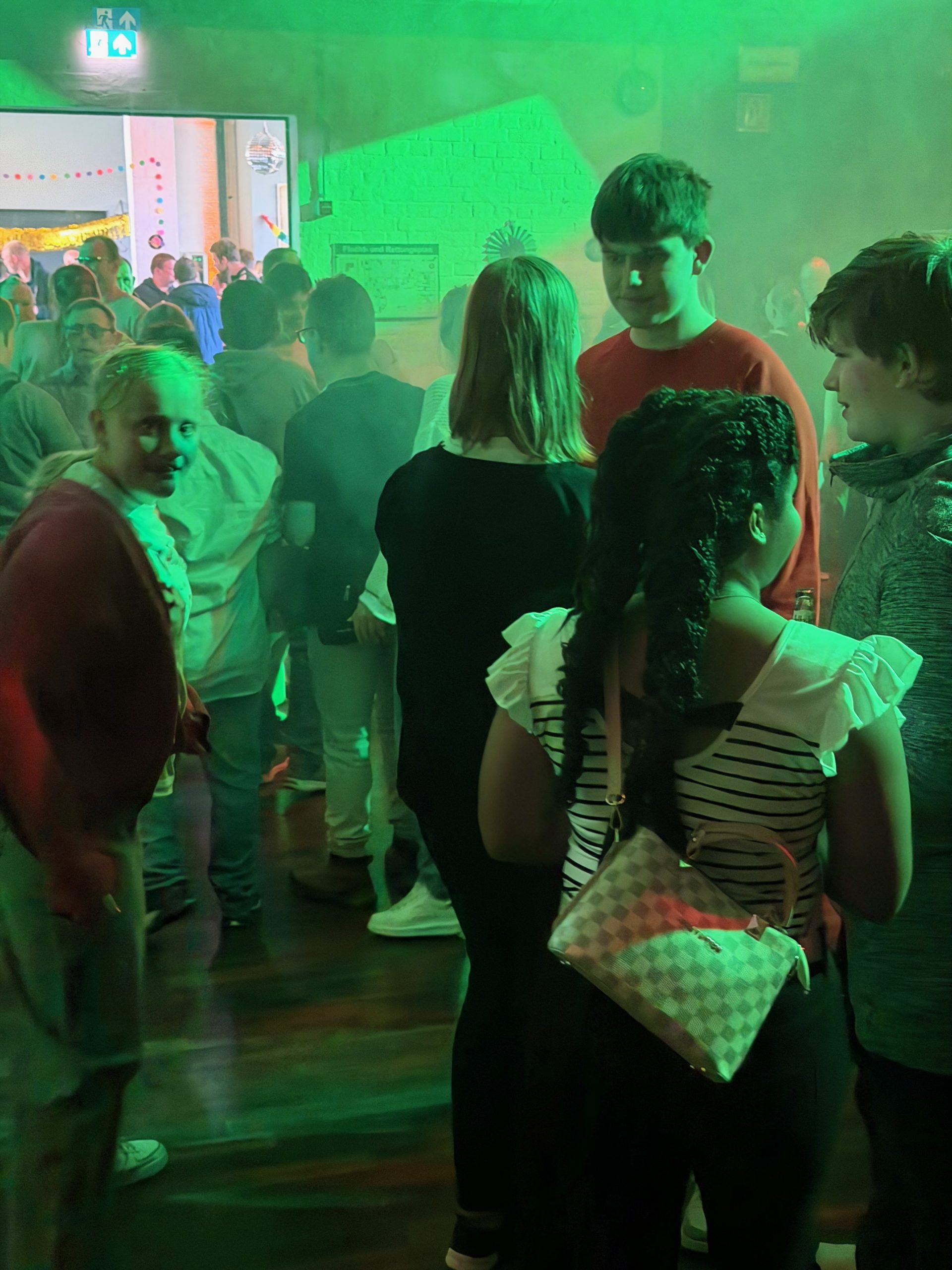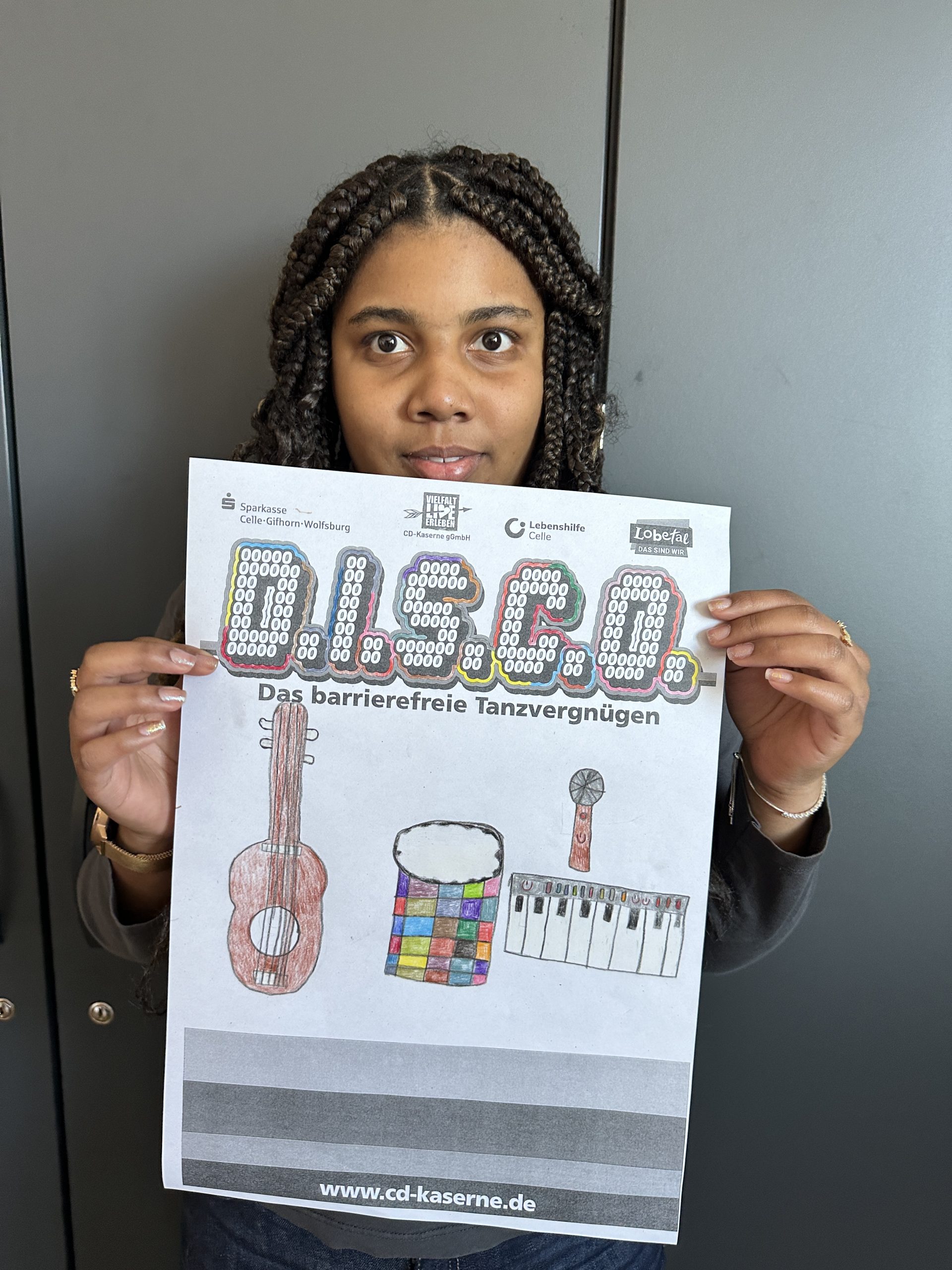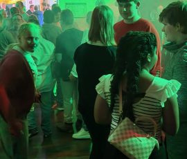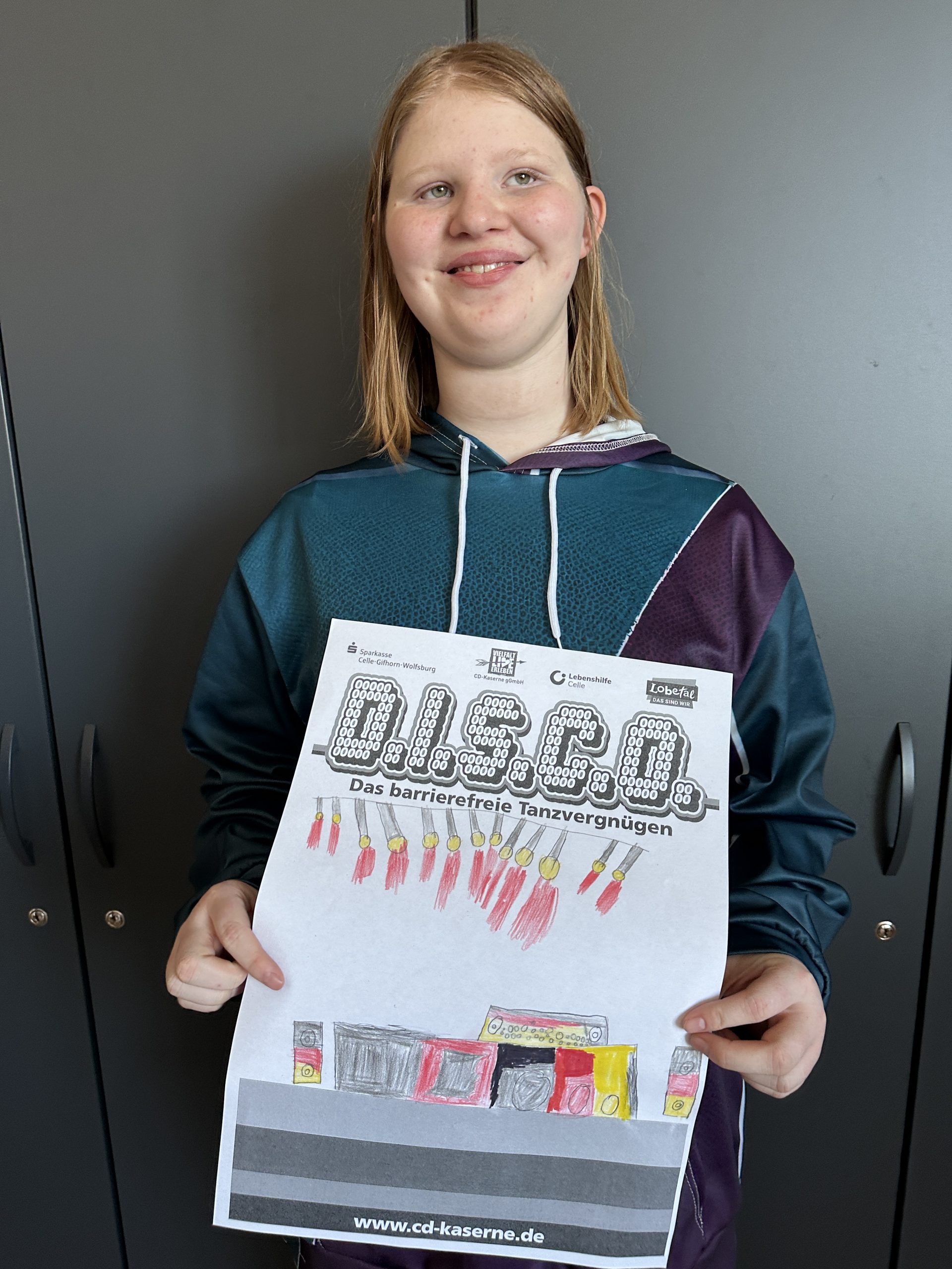 Einige Schüler:innen der Abschlussstufe waren mal wieder zusammen in Celle in der D.I.S.C.O.! Dieses Mal haben wir vorher in der Schule Hot Dogs gegessen. Außerdem wurde gespielt und wir haben uns umgezogen. Dann sind wir mit dem Schulbus in die CD Kaserne gefahren. Am Eintritt haben wir einen Stempel bekommen. Gleich vorne hingen viele selbstgemalte Plakate, auch von unserer Klasse! Wir haben nämlich am Plakatwettbewerb teilgenommen. Zum Abstimmen, welches Plakat das schönste ist, konnten wir bunte Klebepunkte verteilen. Hoffentlich gewinnt eins unserer Bilder! Das wird dann nämlich das Werbeplakat für die nächste Disco.