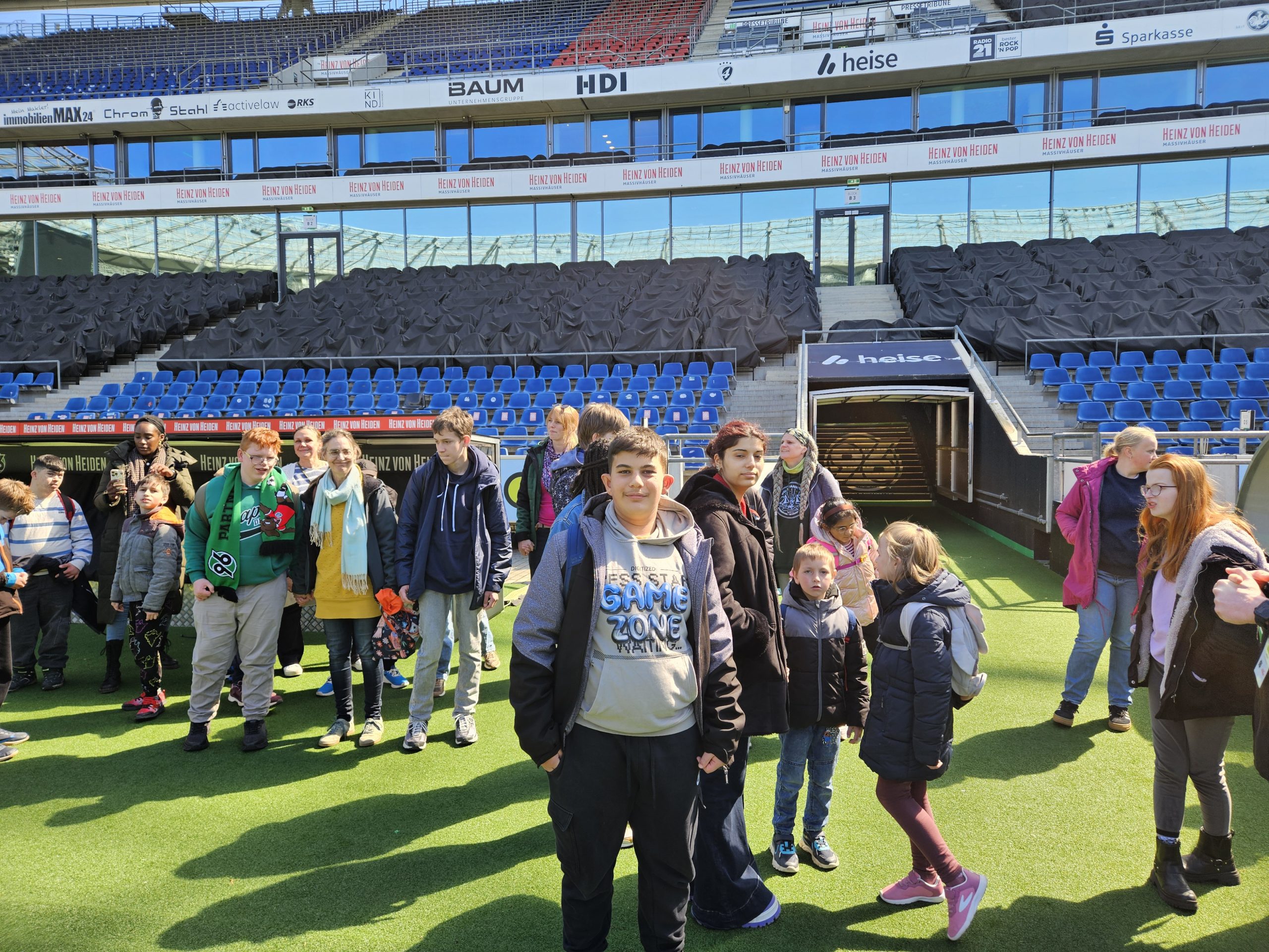 Am Dienstag, den 21.05.2026 ist eine große Delegation der Schule unter den Eichen zum Stadion von Hannover 96 gefahren. Da kurz vorher ein Streik der Üstra angekündigt wurde, hat sich der Förderverein bereit erklärt, uns zu unterstützen. So konnten wir einen Reisebus für die An- und Abfahrt buchen. Vielen Dank an den Förderverein. Schon die Busfahrt war für alle ein echtes Highlight.