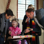Dana und Justin stellten vor, wie sie ihre „Talente“ in die Gemeinschaft der Schule einbringen. Dana geht jeden Morgen zusammen mit Patrik durch die Klassen und fragt für die Essensliste der Köchin: „Sind alle da?“. Justin ist wie viele Schüler und Schülerinnen aus der Abschlussstufe ein „Pate“ für Kinder aus der ersten Klasse und hilft beim Weg vom Bus oder der Pause in die Klasse. Ein Kind aus dem Domino Kindergarten stellte das „Teewagen-Amt“ vor.